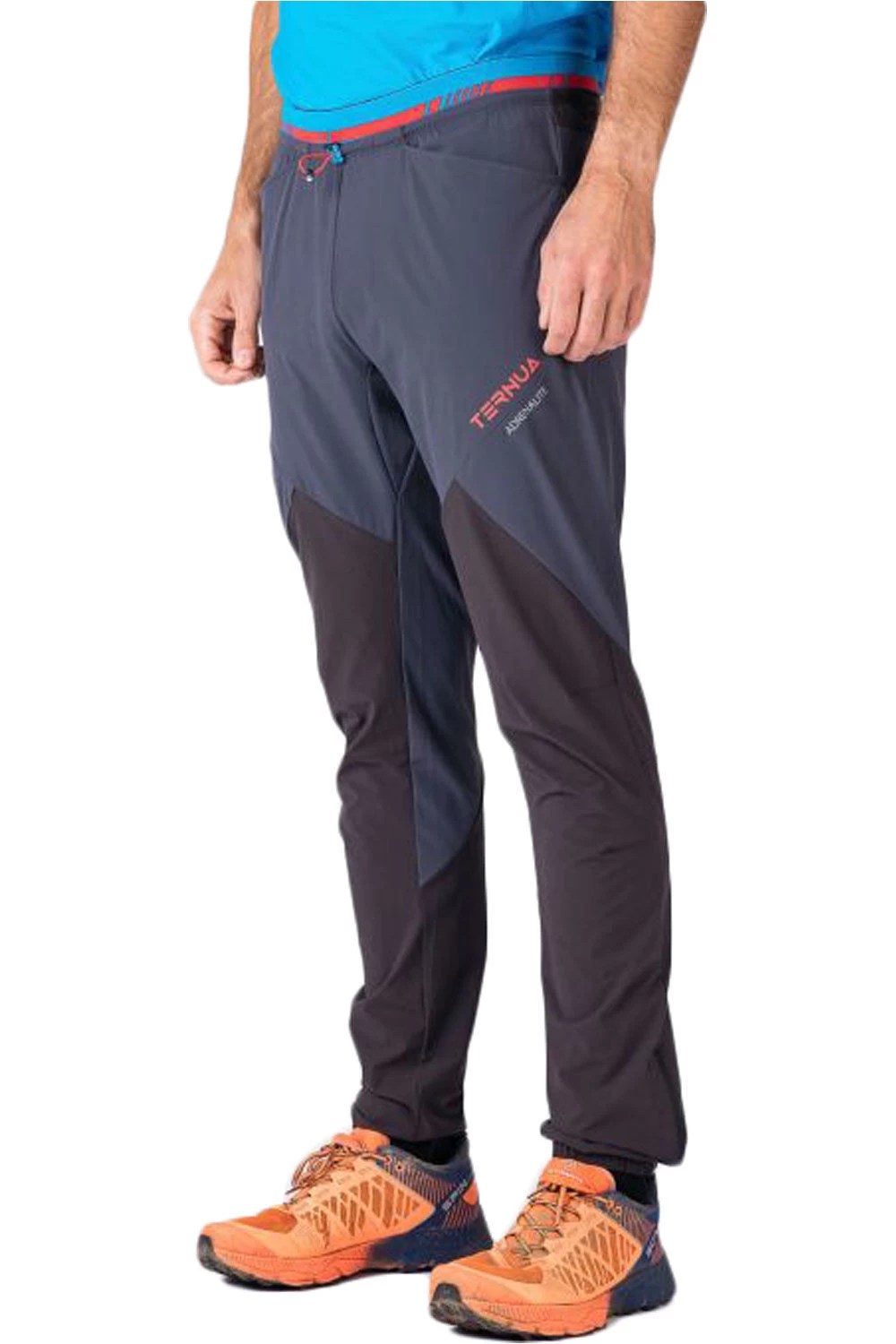 - Pantalón técnico ligero y elástico confeccionado con tejido shellstretch reciclado procedente de redes de pesca desechadas.